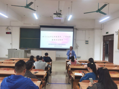 在会上,各教研室主任首先带领老师们学习习近平总书记在考察清华大学、广西时的重要讲话精神并传达自治区党委关于学习习近平总书记视察广西时的重要讲话和重要指示的会议精神。各教研室主任强调,要深刻领会习近平总书记的重要讲话精神,用理论指导实践,不断提高立德树人的能力和水平。