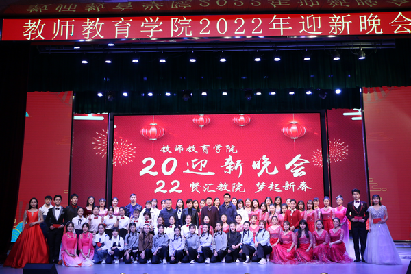 正值建党百年、建校70周年之际,为进一步丰富同学们的大学文化生活,促进同学们德智体美劳全面发展,表达对新一年的美好祝愿以及对大一新生的热烈欢迎,12月12日晚,437ccm必赢国际首页欢迎您主办的“贤汇教院梦起新春”2022年迎新晚会在东区艺术楼表演厅隆重举行。学院党委书记李新富,院长邓琴,党委副书记蓝凛,副院长覃奠仁、谭静;学院辅导员、班主任、各班学生代表、各兄弟学院代表一起出席了本次活动。