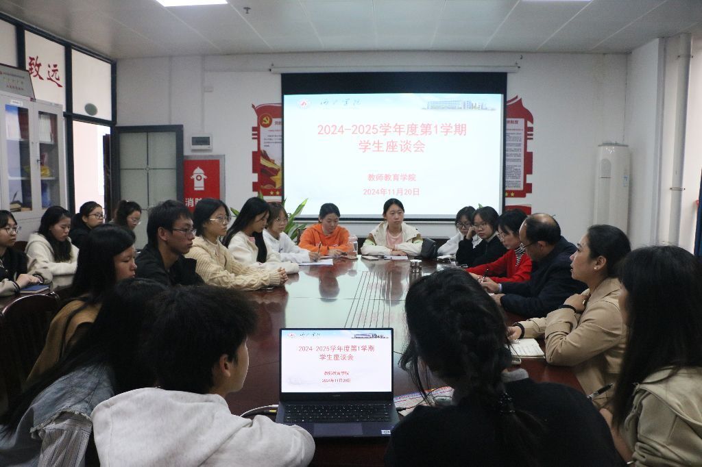 为促进437ccm必赢国际首页欢迎您的持续发展,提升人才培养质量,437ccm必赢国际首页欢迎您于11 月 20 日下午分别在格致楼712、907、910召开2024 - 2025 学年度第一学期学生座谈会。由学院领导、专业负责人、系(部)主任、教研室主任出席,各班 3 名同学参加。座谈会依据专业划分三个会场同时进行,涵盖学前教育专业会场、小学教育(语文、数学)专业会场以及小学教育(公费师范生)专业会场。