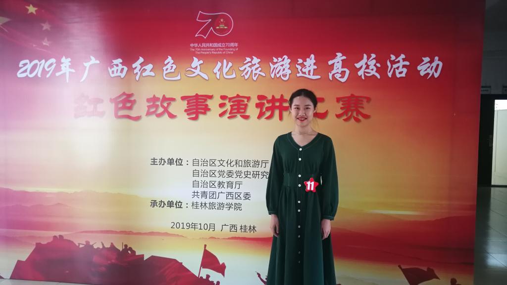 10月29日上午,红色文化旅游进高校活动之红色故事演讲比赛在桂林旅游学院举行。必赢国际官网小教五年制163班刘蓝兰同学前往参赛,并在演讲比赛中获得一等奖的佳绩。