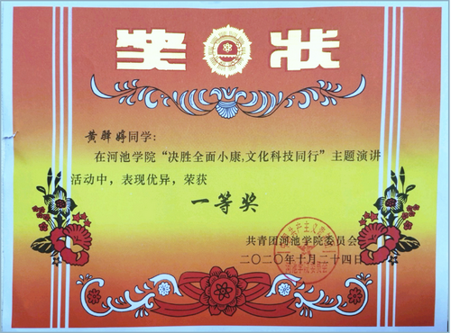 必赢国际官网小学教育五年制162班黄驿婷在“决胜全面小康,文化科技同行”主题演讲活动中荣获一等奖。